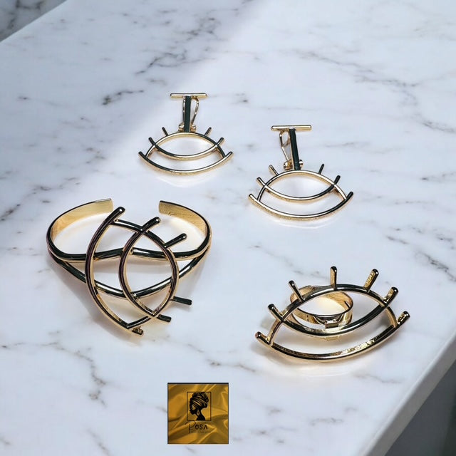 "THE EYES". Ensemble boucles d'oreilles , bague et bracelet